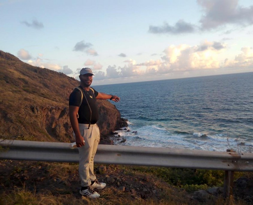 Nevisian artist Vaughn Anslyn working on the masterpiece.